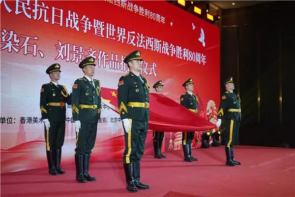 艺术,是人类/共通的语言,是铭记历史、传递情感、启迪思想的/强大载体。在这样一个/具有/里程碑意义的/纪念时刻,陆染石先生/与刘景齐先生/以艺术家的高度/历史责任感/与深沉的/家国情怀,倾情创作,联袂i推出/此次作品/捐赠仪式。他们以笔为戈,以墨为血,用精湛的技艺/和独特的/艺术视角,将历史的/壮阔画卷、英雄的/铮铮铁骨、民族的/坚韧不屈/以及对/和平的/深切渴望,凝练于/尺素之间,挥洒于/意象之外。