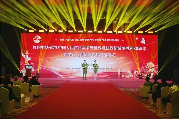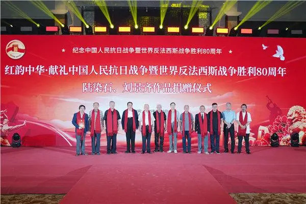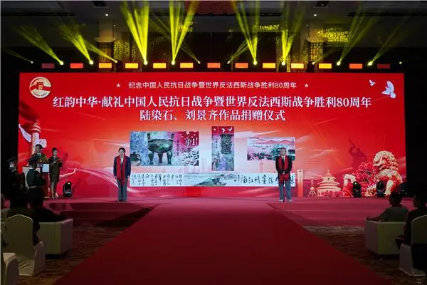 2025年8月29日下午,红韵中华一献礼中国人民抗日战争暨世界反法西斯战争胜利80周年陆染石、刘景齐双人国画作品捐赠仪式在国际会议中心举行。